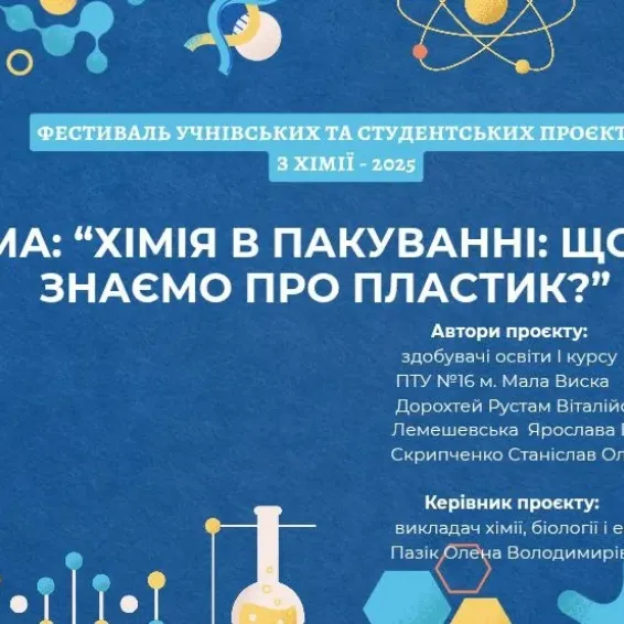 Здобувачі освіти групи №17 #ПТУ16 м. Мала Виска взяли активну участь у Всеукраїнському фестивалі учнівських та студентських проєктів з хімії, що став унікальним майданчиком для обміну ідеями, дослідницькими досягненнями та творчими ініціативами молоді з усієї України. Захід був організований Полтавським національним педагогічним університетом імені В. Г. Короленка у співпраці з Державною науковою установою «Інститут модернізації змісту освіти», Полтавською академією неперервної освіти імені М. В. Остроградського та Центром професійного розвитку педагогічних працівників Полтавської міської ради.