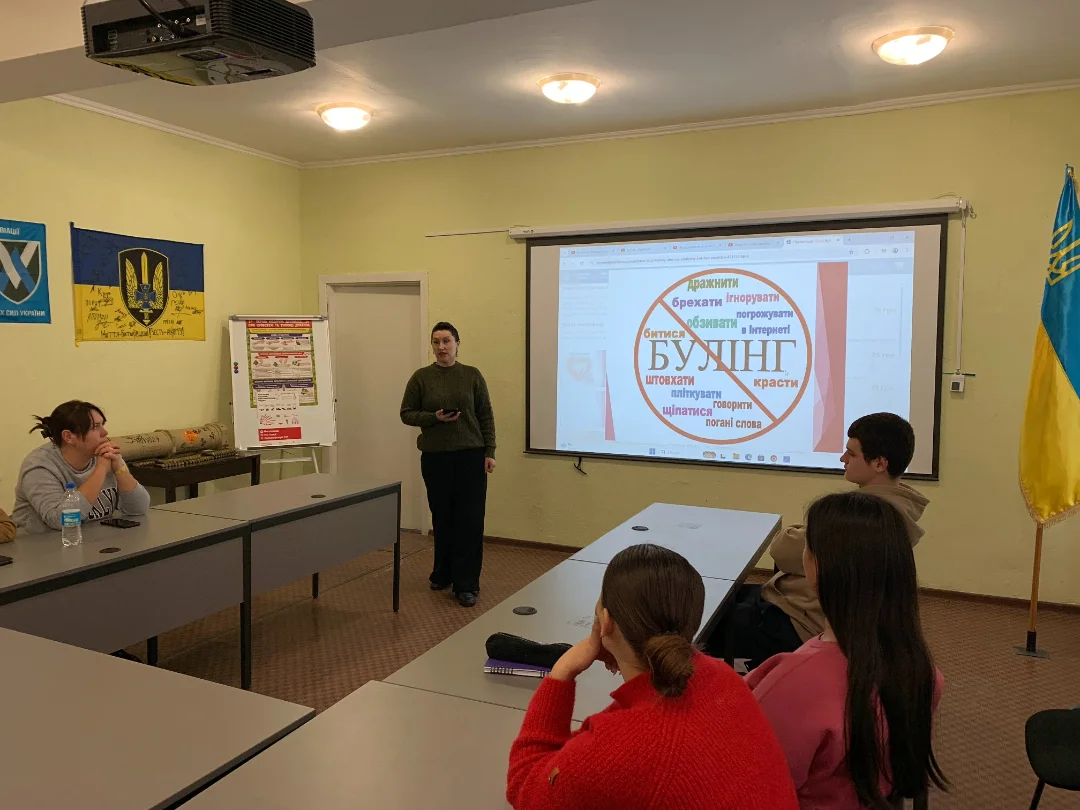 Під час зустрічі обговорювали поняття насильства, булінгу, кібербулінгу, їхні прояви та наслідки для особистості Здобувачі освіти дізналися, як розпізнати ситуації насильства, до кого звертатися по допомогу, як захистити себе та підтримати однокласників, які стали жертвами агресії.